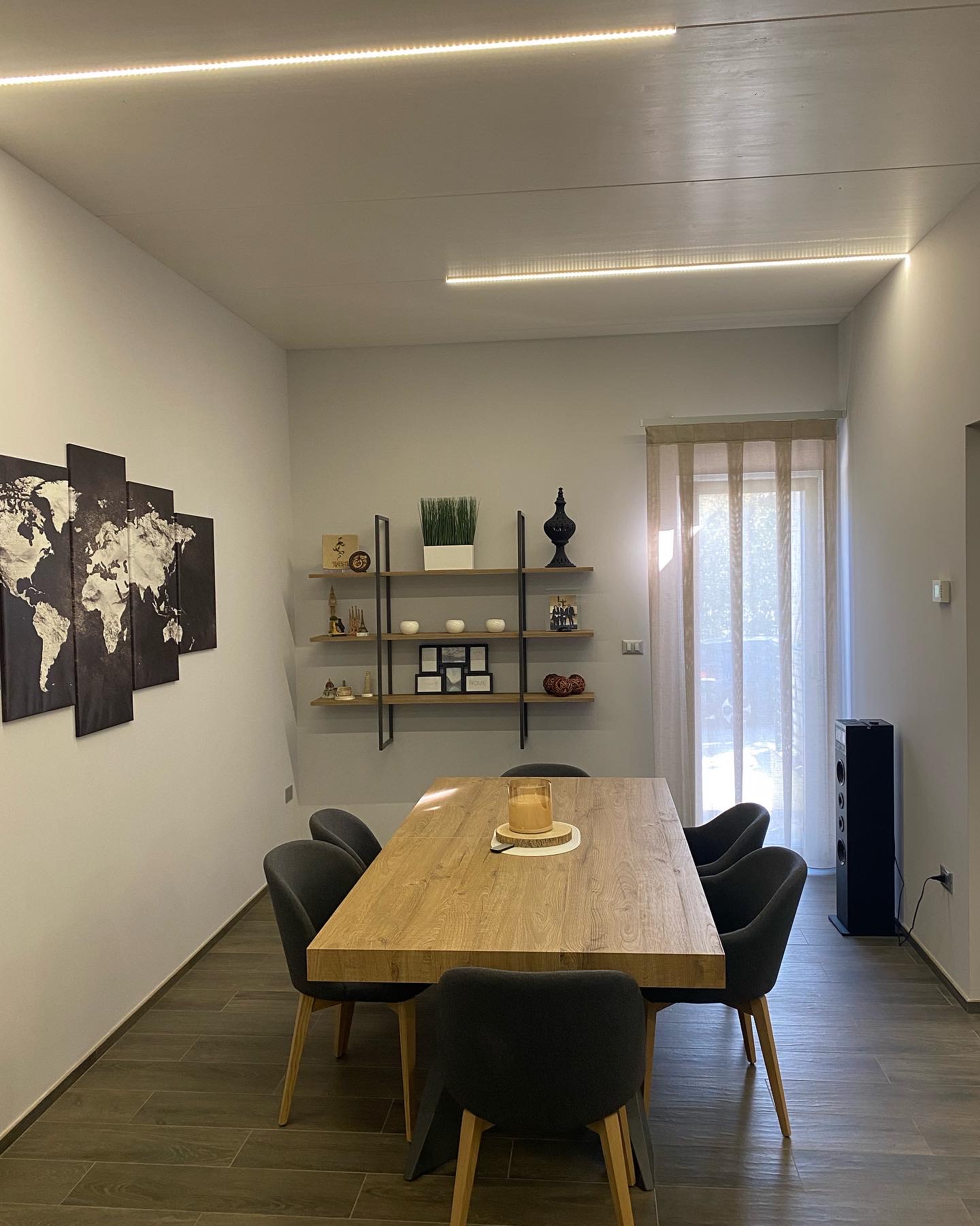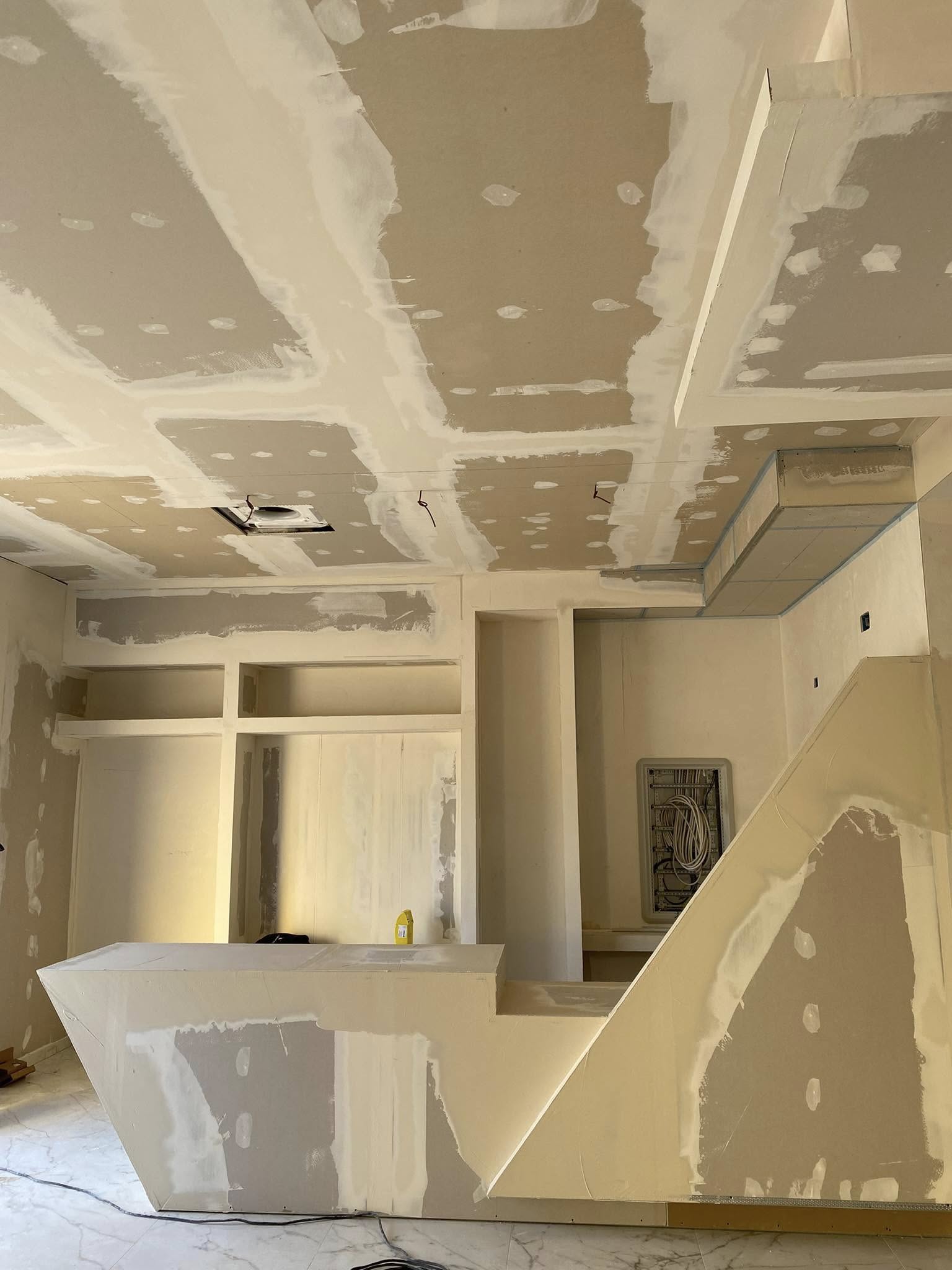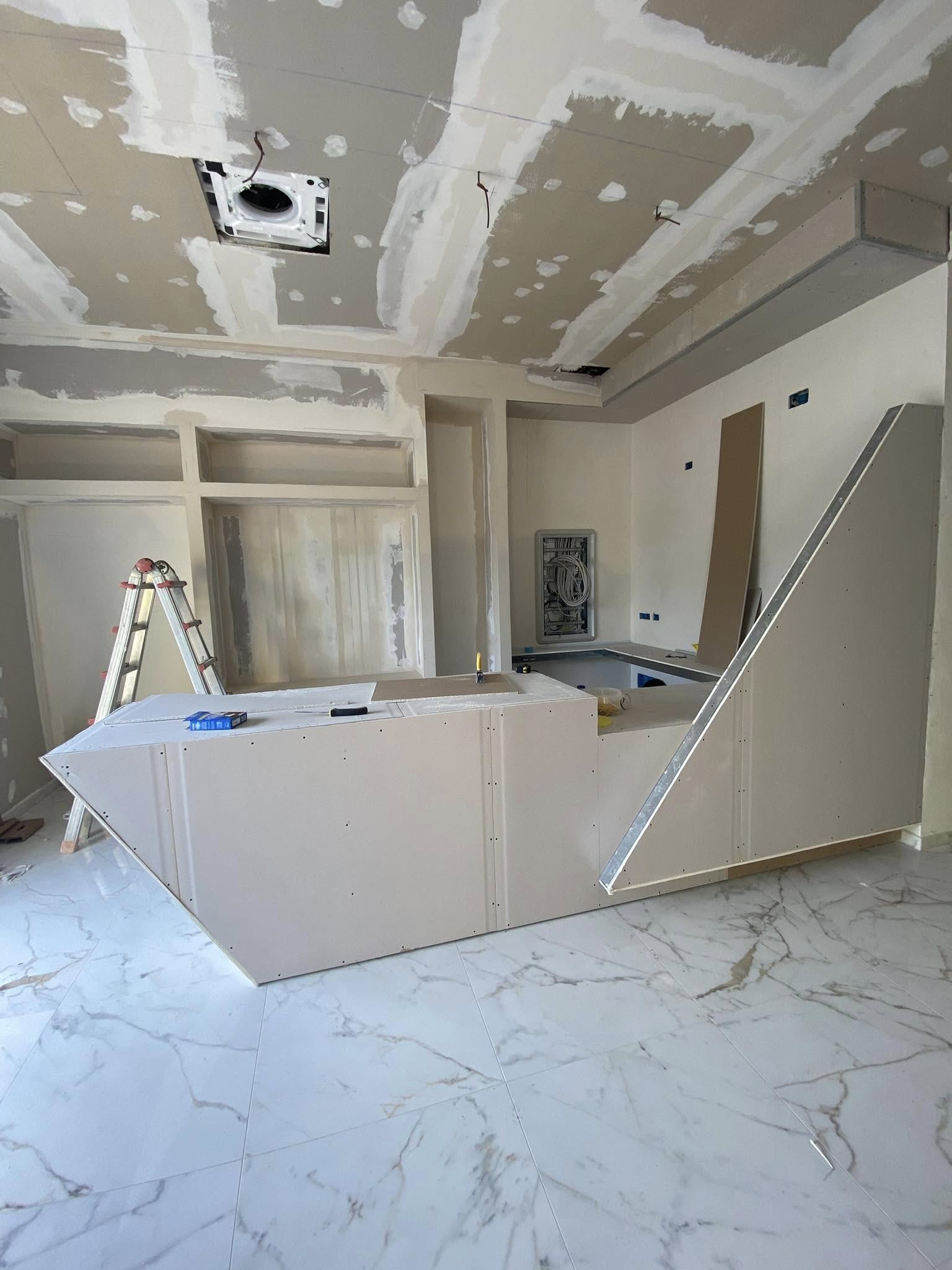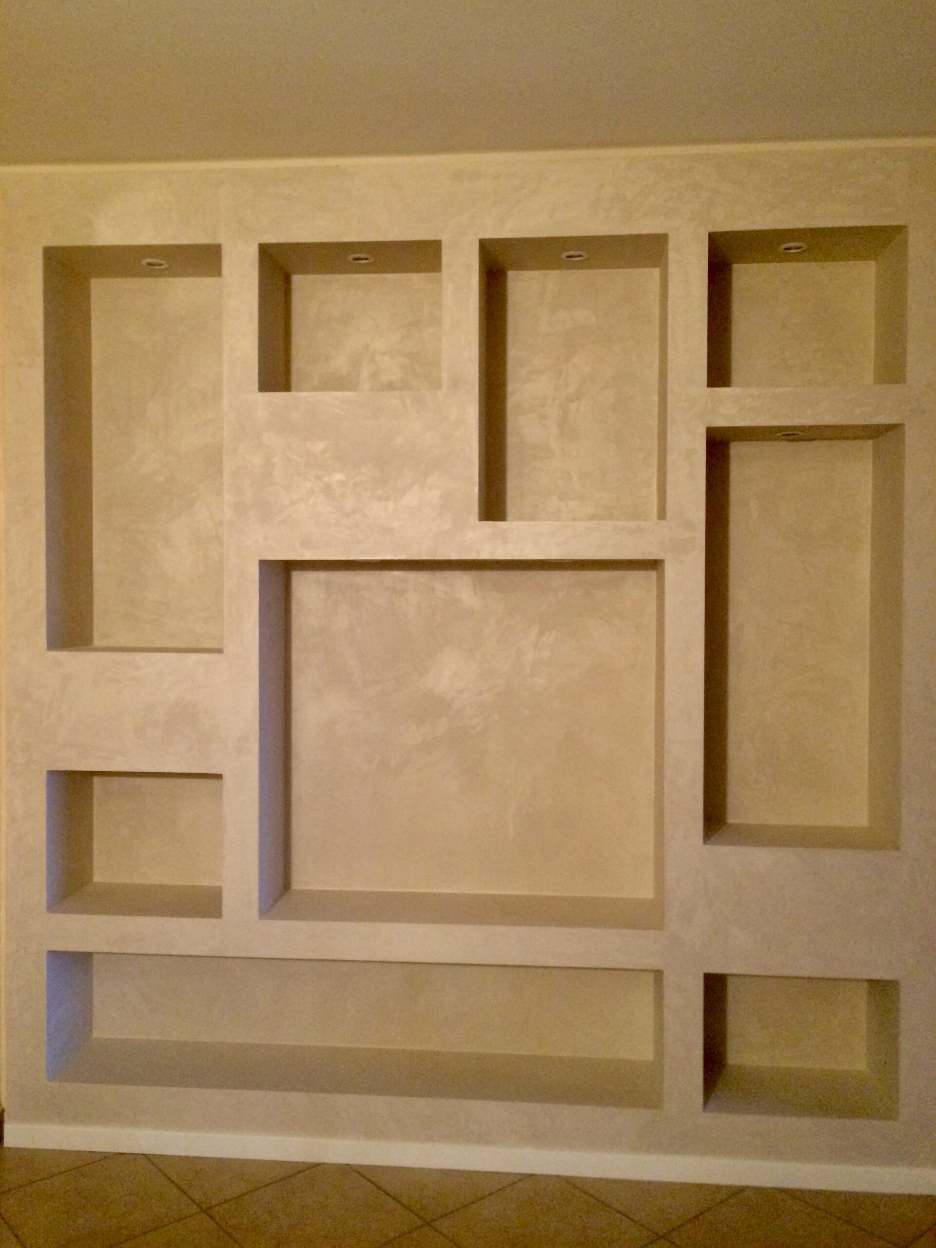 Il cartongesso è il nostro materiale di elezione, che utilizziamo per creare pareti divisorie, soffitti sospesi, nicchie, librerie integrate e molte altre soluzioni personalizzate.